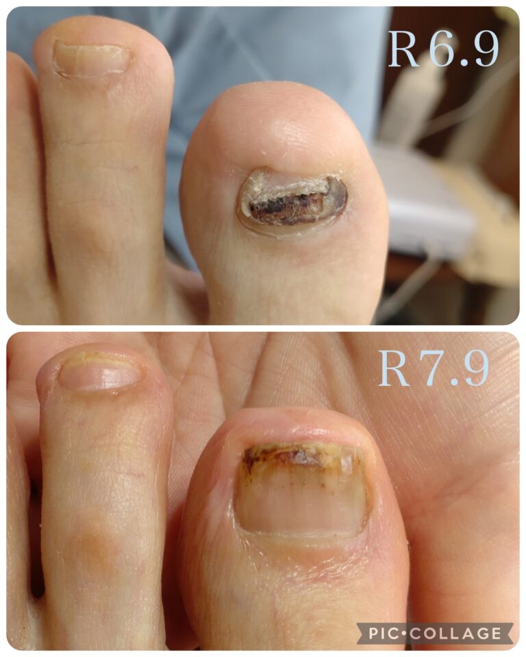 度々の爪下出血により爪が剥がれ、生え変わり時の陥入の痛みで